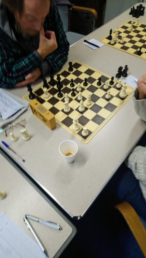 Pakovlevas had his King driven out into the centre of the board and the game didn’t last long too long. Marshall found it tough to develop his pieces against Chtym, and after having arriving late lost on time. My defensive Caro-Kann did just enough to worry Ansari who took the draw even though, if he’d gambled, he might have won a useful pawn. Lavanan was winning well when Figgins blundered and lost a N to save his Queen. Then, when both raced to queen a pawn, Ainkaran got his up the board first to victory. Tom played nicely to open up the queenside a and b files against Barr’s queenside-castled K, and as the pressure grew and Barr defended adroitly, Barton finally won a key pawn enabling him to advance and queen his own pawn. On top board Ramage did well to go a pawn up but as the pieces were swapped off Neville forced the ending down to Bishops of opposite colours and draw was quickly agreed. The result hinged on Anthony Kent’s game. After a game where the advantage keep changing, he had the advantage until Wickham got his Q&R down to the back rank. Suddenly, Tony’s King was forced out into the open and in the mad time scramble, got mated. Very disappointing after our good performance and win at Loughton.