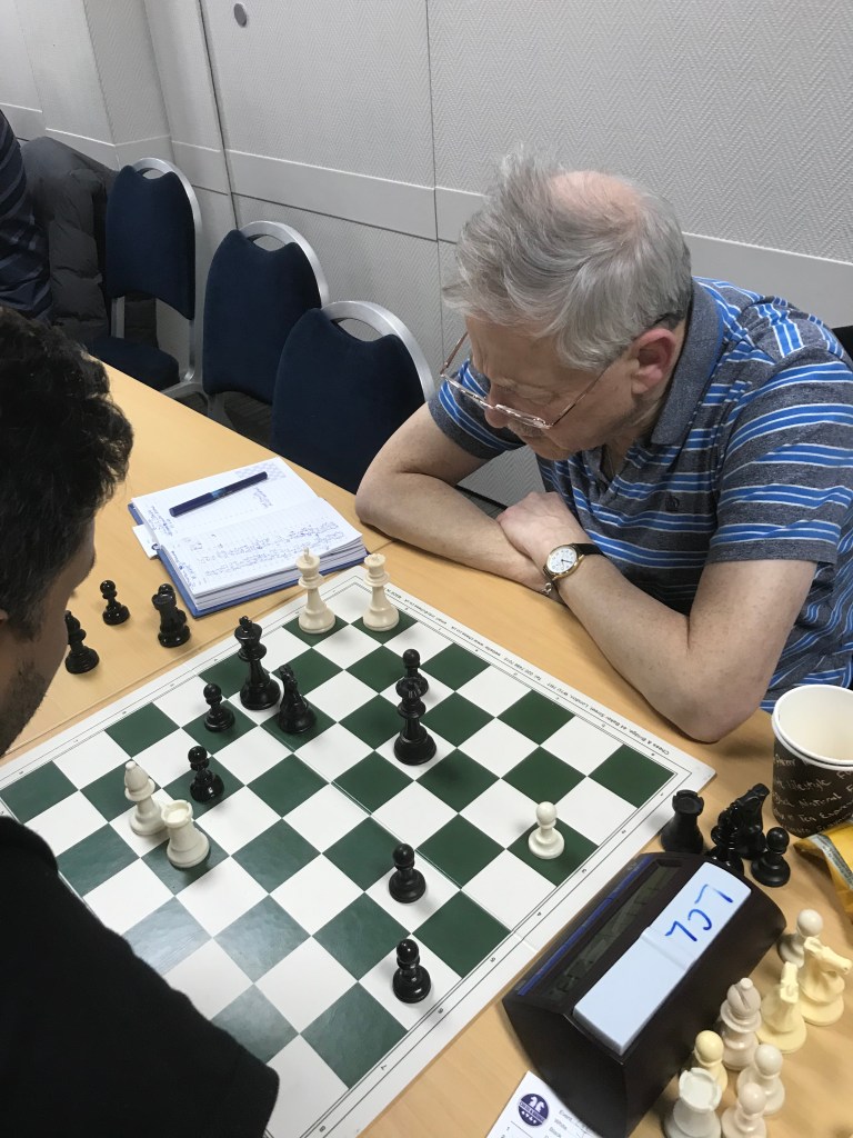 Not our best night against the likely Division 2 champions. Gideon Vecht gained our only win. Good draw on top board for Paolo Casaschi who lost the exchange but managed to gain a passed pawn to tie down his opponent. Also a draw for Malcolm Gesthuysen. Jef Page won material and had perpetual check for the taking which he did not take trying to win for the team.