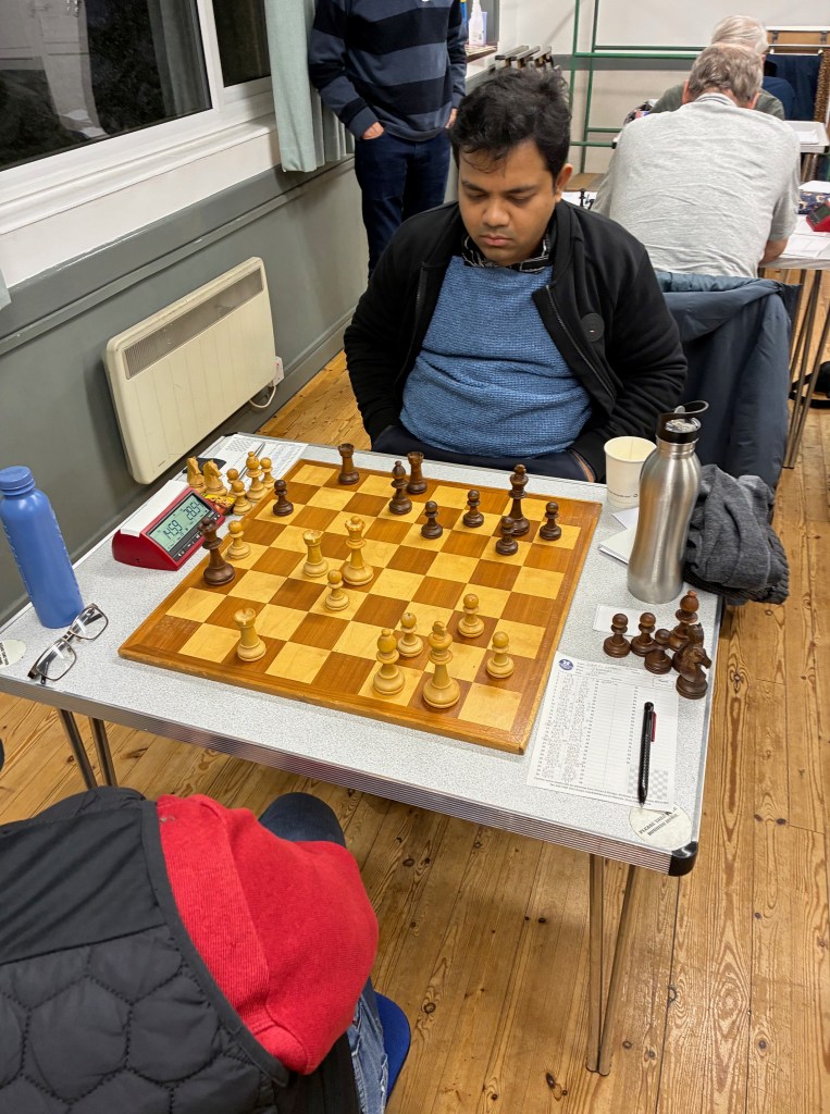 A strange match which almost started badly for us on one of the worst nights possible for chess and thinking as noise distractions & loud explosions caused by fireworks went off right outside as Divali was being celebrated. Ken took 2 buses to get to the match, but had to just watch as he had no opponent to play.