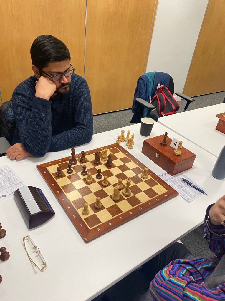 So the equal match hinged on Rahul’s game. With his K-side crippled and having to defend double f-pawns made life difficult, but in a rapid endgame with time running out he got he advantage of a Q,R & N attack to win the endgame and the match.