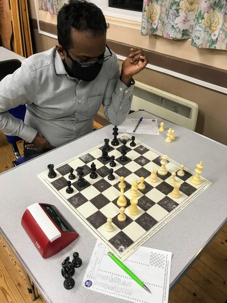 Adrian got nothing out of Phil Staniland’s defence but conversely Venkatesh worked hard to successfully break down Keith Jones’s position with his 2 very strong fianchettoed Bishops.